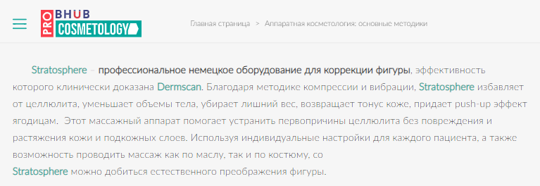 PRO Cosmetology — профессиональное издание для косметологов, врачей эстетической медицины, специалистов SPA-салонов, руководителей клиник и салонов красоты, сделал подборку основных методик в аппаратной косметологии. Полную статью вы можете прочитать тут.